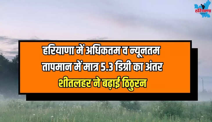 Haryana Weather: हरियाणा में अधिकतम व न्यूनतम तापमान में मात्र 5.3 डिग्री का अंतर, शीतलहर ने बढ़ाई ठिठुरन