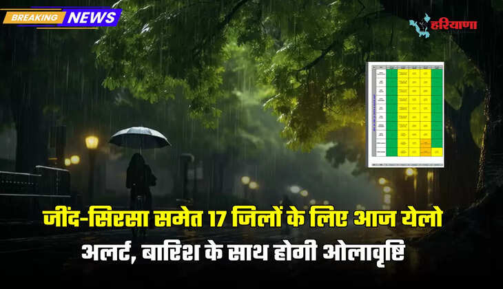 Haryana Rain Alert Today: हरियाणा के जींद-सिरसा समेत 17 जिलों के लिए आज येलो अलर्ट, बारिश के साथ होगी ओलावृष्टि, जाने मौसम विभाग नया अपडेट