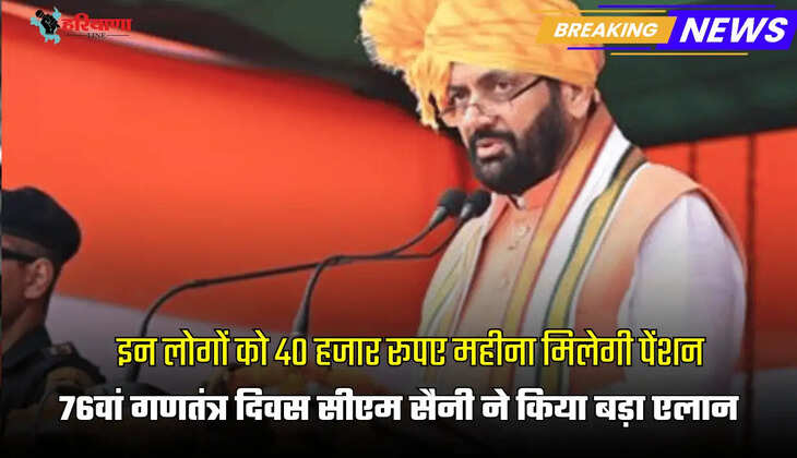 Haryana Pension Scheme: हरियाणा में इन लोगों को 40 हजार रूपए महीना मिलेगी पेंशन, 76वां गणतंत्र दिवस सीएम सैनी ने किया बड़ा एलान