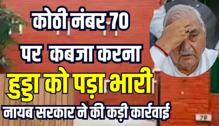 हरियाणा प्रदेश में 8 अक्टूबर 2024 को घोषित हुए हरियाणा विधानसभा के चुनाव परिणाम में भारतीय जनता पार्टी की पूर्ण बहुमत की सरकार बनी थी। 8 अक्टूबर 2024 को घोषित हुए चुनाव परिणामों में 90 विधानसभा सीटों में से 48 सीटें भारतीय जनता पार्टी को हासिल हुई। प्रदेश में पूर्ण बहुमत की सरकार बनने के बाद हरियाणा प्रदेश का नया मुख्यमंत्री नायब सिंह सैनी को बनाया गया। हरियाणा प्रदेश में नायब सिंह सैनी की सरकार बनने के बाद सरकार ने पूर्व मुख्यमंत्री भूपेंद्र सिंह हुड्डा को दिसंबर 2024 में कोठी नंबर 70 खाली करने के लिए कहा गया था। लेकिन उसे समय भूपेंद्र सिंह हुड्डा ने यह कोठी खाली करने के लिए सरकार से 15 दिन का अतिरिक्त समय मांगा था। लेकिन सरकार के आदेशों के बाद लगभग 75 दोनों का समय बीत जाने के बाद भी भूपेंद्र सिंह हुड्डा द्वारा कोठी नंबर 70 खाली नहीं करने पर सरकार ने कड़ी कार्यवाही करते हुए 2 लाख रुपए पीनल रेंट ठोक दिया है।