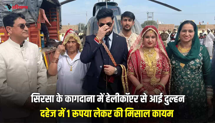 Sirsa News: सिरसा के कागदाना में हेलीकॉप्टर से आई दुल्हन, दहेज में 1 रूपया लेकर की मिसाल कायम