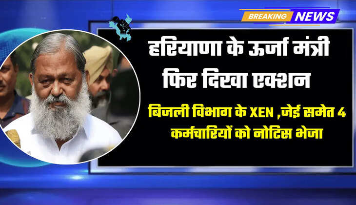 हरियाणा के ऊर्जा मंत्री फिर दिखे एक्शन में, बिजली विभाग के XEN ,जेई समेत 4 कर्मचारियों को नोटिस भेजा; सही जवाब नहीं देने पर होगी कार्रवाई