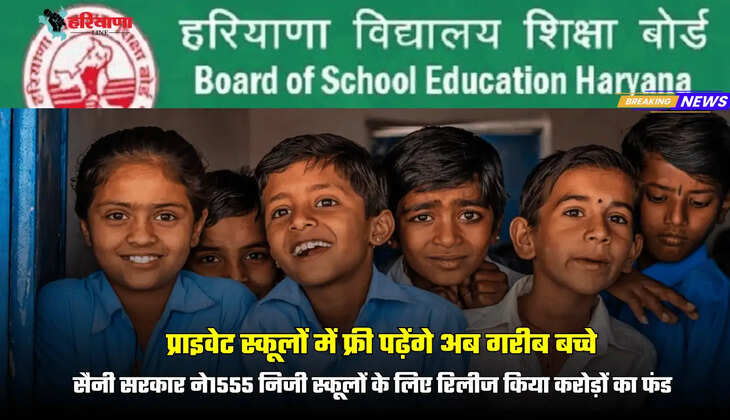 हरियाणा प्राइवेट स्कूलों में फ्री पढ़ेंगे अब गरीब बच्चे, सैनी सरकार ने1555 निजी स्कूलों के लिए रिलीज किया करोड़ों का फंड- HBSE UPDATE