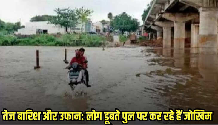 तेज बारिश और उफान: लोग डूबते पुल पर कर रहे हैं जोखिम