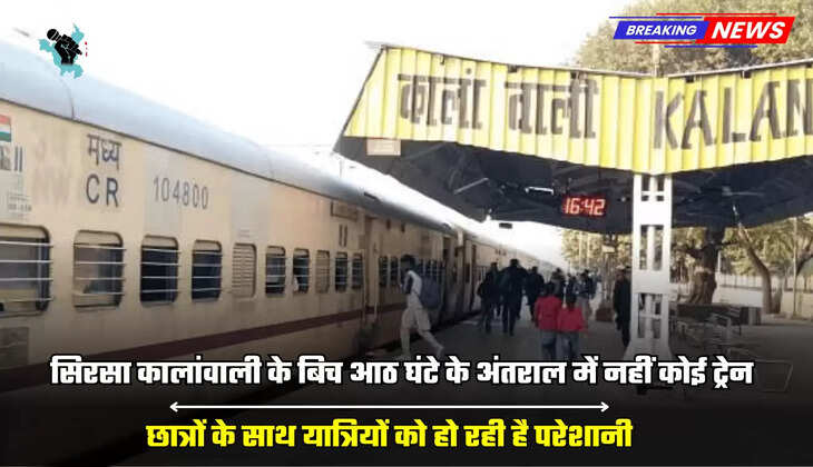 Sirsa News: कलांवाली रेलवे स्टेशन से सिरसा के लिए सुबह 5.43 बजे के बाद लगभग आठ घंटे तक एक भी ट्रेन नहीं है। इसके कारण कलानवाली से सिरसा और हिसार जाने वाले सैकड़ों छात्रों और दैनिक यात्रियों को काफी परेशानी का सामना करना पड़ रहा है।
