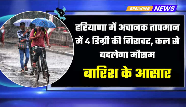 Haryana Weather Update : हरियाणा में अचानक तापमान में 4 डिग्री की गिरावट, कल से बदलेगा मौसम, बारिश के आसार, मैप द्वारा समझें ताजा अपडेट
