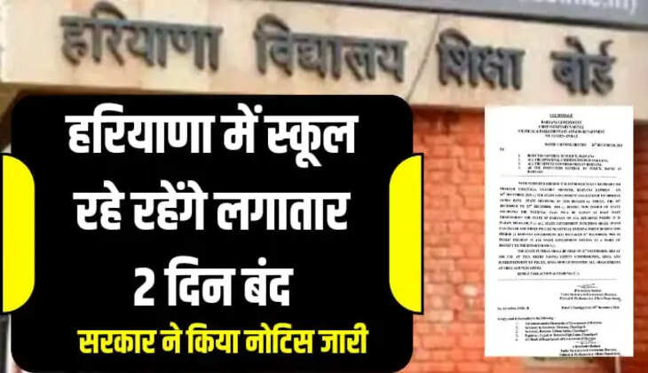 HARYANA SCHOOL HOLIDAY: हरियाणा के सभी स्कूल रहेंगे 2 दिन बंद, शिक्षा विभाग ने की छुट्टी की घोषणा