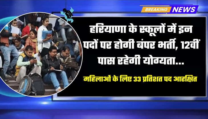 हरियाणा के स्कूलों में इन पदों पर होगी बंपर भर्ती...12वीं पास रहेगी योग्यता, महिलाओं के लिए 33 प्रतिशत पद आरक्षित
