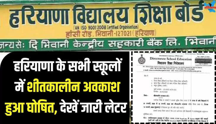 Winter Vacation Haryana: हरियाणा के सभी सार्वजनिक और निजी स्कूलों शीतकालीन अवकाश हुआ घोषित, शिक्षा विभाग ने जारी किया लेटर