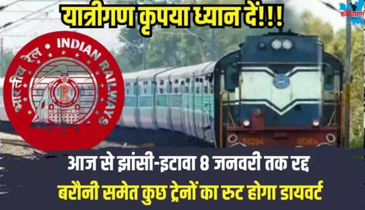 Train Cancelled Update: यात्रीगण कृपया ध्यान दें! आज से झांसी-इटावा 8 जनवरी तक रद्द, बरौनी समेत कुछ ट्रेनों का रुट होगा डायवर्ट