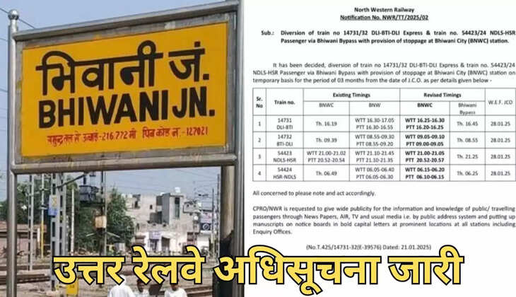 Northern Railway notification issued:हिसार-भिवानी और रोहतक होकर दिल्ली जाने वाली दो ट्रेनों के रूट में हुआ बदलाव